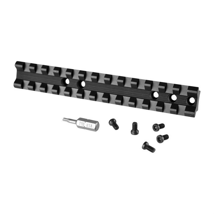 - Full-length Picatinny cross slots for flexible mounting of scope rings and accessories