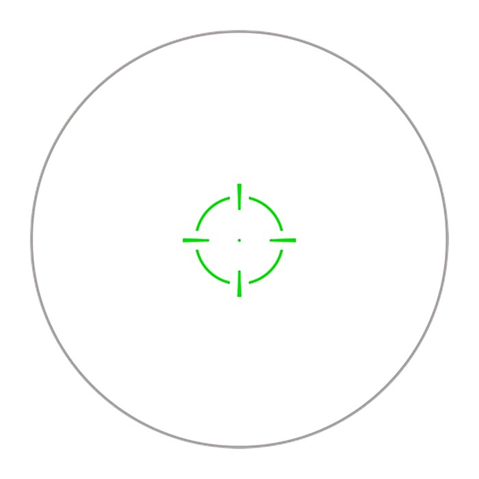 Battery Life: 3000 hours Brightness Settings: 10 settings Click Value: 1 MOA Finish: Black Power Supply: CR 2032 Reticle: Green Circle Dot Sight Type: Red Dot Weight: 3.49 oz Product no.: 100047466
