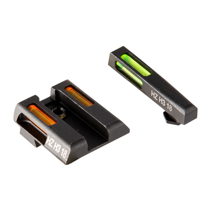 Sold as front/rear sets, the HIVIZ LiteWave H3™ Green / Orange Front Ring sights are designed for a drop-in fit to your pistol's factory slide dovetails or screw holes. The sight bodies are constructed entirely of steel, ensuring excellent protection for the Tritium and fiber optic inserts.