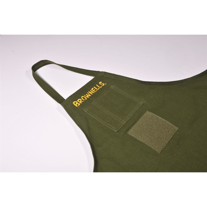Brownells shop aprons have been a mainstay on the workbenches of both professional and hobbyist gunsmiths for decades. Our Long Shop Apron is excellent for all-around use and chores like painting and finishing. Any time there's a risk of getting dirt, debris, oil, or other gunk on your clothes, you'll want to wear this apron. It offers all the quality and features you expect from Brownells.
