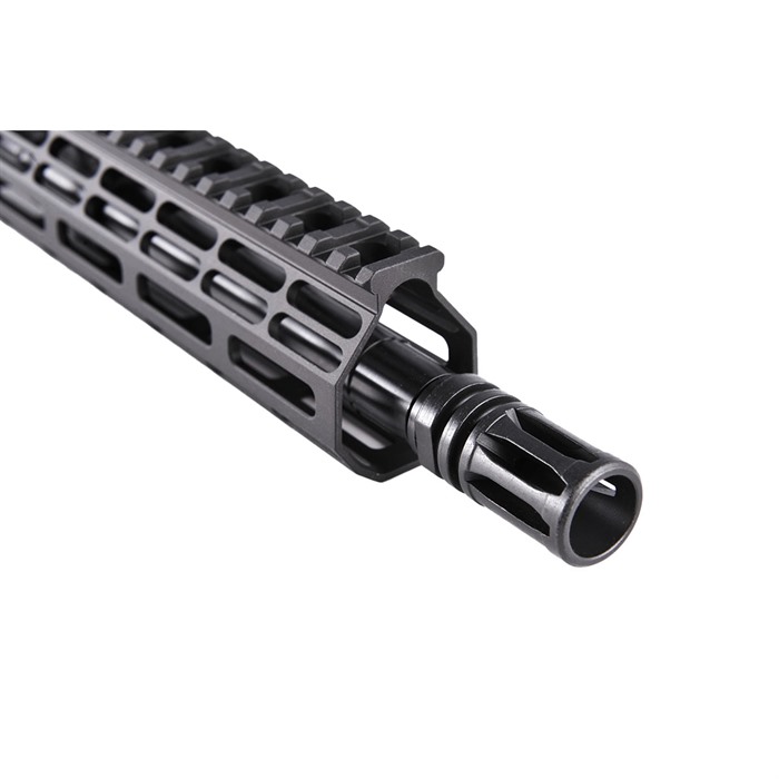 - The product comes assembled with a standard A2 flash hider, but the muzzle brake is not pinned nor welded, requiring modification to comply with the National Firearms Act for a rifle build.