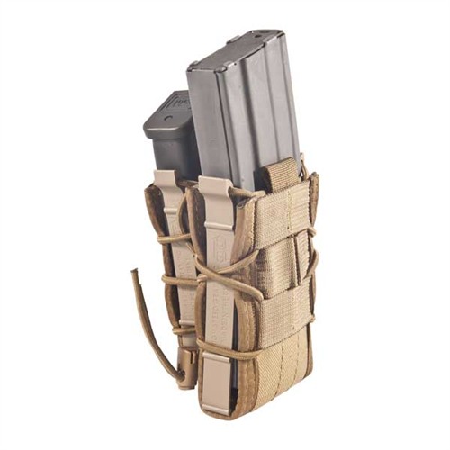 The High Speed Gear Double Decker TACO® magazine carrier seamlessly combines a modular rifle mag pouch and a modular pistol mag pouch into one secure unit. This innovative design allows for a variety of combinations of magazines and accessories to be stored securely.