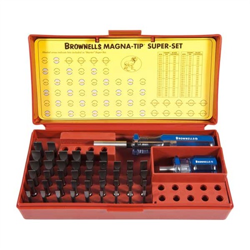 The MAGNA-TIP 44 BIT PROFESSIONAL SCREWDRIVER SET from BROWNELLS is expertly designed for firearms enthusiasts and professionals alike. This comprehensive set includes a variety of bits to tackle any gunsmithing task with ease.