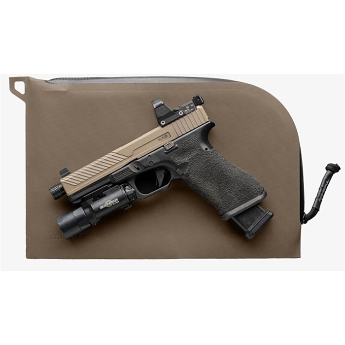 Constructed of durable DAKA material and featuring a water-resistant YKK® AquaGuard® zipper, a 550 paracord zipper pull, and a pull-tab that doubles as a carabiner pass-through, the DAKA Single Pistol Case is rugged, water resistant, and the perfect storage solution for your pistol and more.