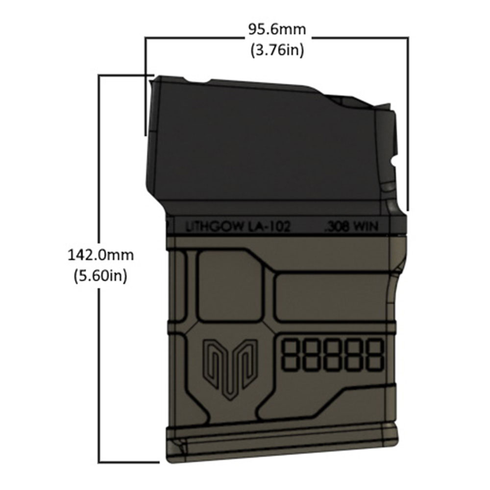 Compatible with Lithgow LA 102 10 round magazine for .223 Remington and .308 Winchester (including .243win and 6.5 Creedmoor) with Mamba bottom metal.