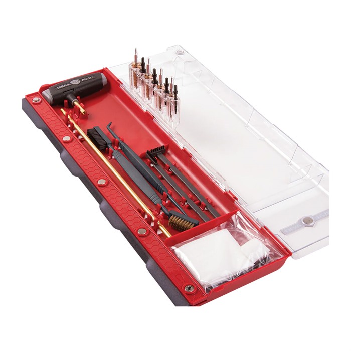 813119012662 Upgrade your cleaning experience with the world’s first handgun Master Cleaning Station from Real Avid. Designed for comprehensive cleaning of .22 / 9mm / .357 / .38 / .40 / .45 caliber handguns. It combines a Next-Gen cleaning mat with an intelligently designed cleaning kit filled with an extensive set of handgun specific cleaning tools. It keeps easy-to-lose gun parts organized while you work. It provides a huge work area for a completely disassembled gun yet rolls up for compact storage in the included bag.Delivery time approx. 7-14 days.