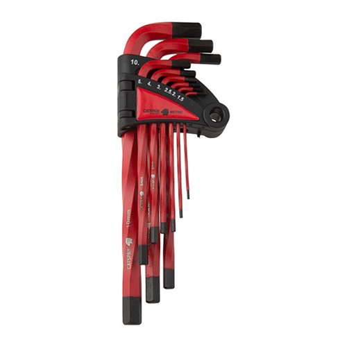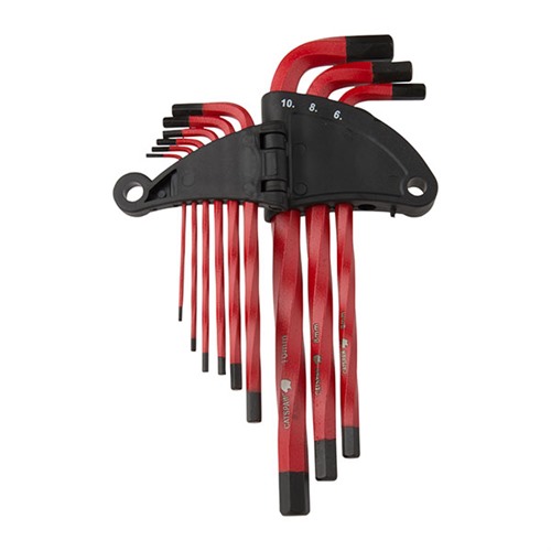 The MAYHEW HEAVY DUTY TWISTED HEX KEY SET is expertly crafted from superior quality S2 tool steel, ensuring reliability and performance for all your gunsmithing needs. This 9-piece metric twisted hex key Allen set is designed to provide exceptional torque capacity thanks to its unique twisted design prior to the heat treating process.