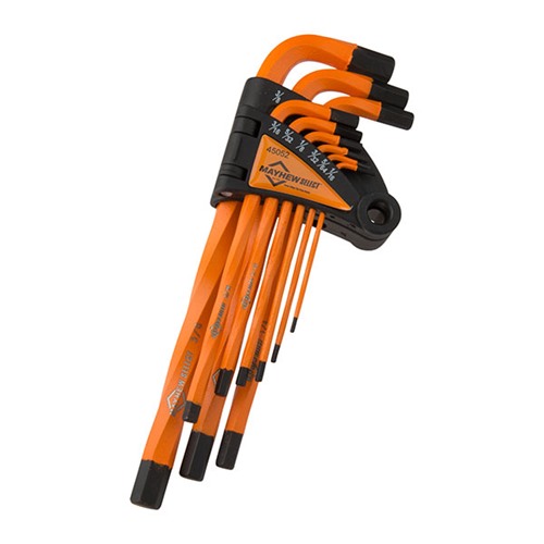 The MAYHEW HEAVY DUTY TWISTED HEX KEY SET is designed for professionals who demand superior quality and performance in their tools. Crafted from S2 Tool Steel, this set offers unmatched durability and reliability for all your gunsmithing needs.