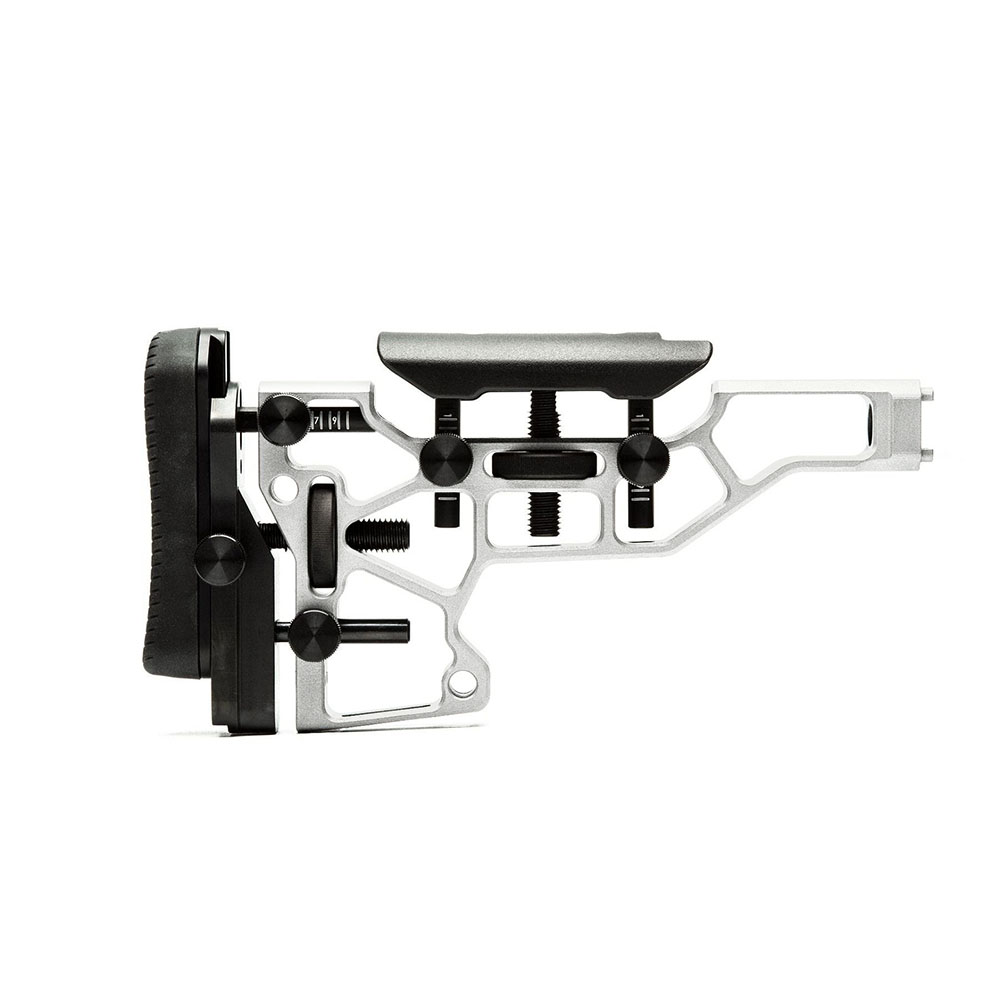 - The MDT Skeleton Rifle Stock features toolless adjustments for cheek riser and buttpad, enhancing shooter comfort and performance.