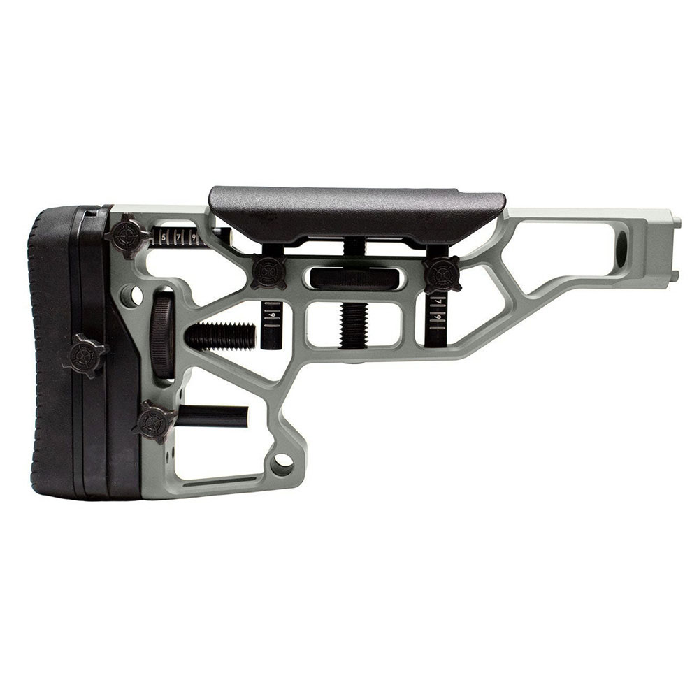 709951110508 Toolless adjustment of the MDT Skeleton Rifle Stock elevates the comfort and performance of the shooter. Horizontal, vertical and cant adjustment to the cheek riser and buttpad ensures a perfect fit for your shooting position. Elite has a steel buttplate and two etched guide rods. Fits ACC and ESS chassises (XTN interface).Reordered, delivery time approx. 4-12 weeks