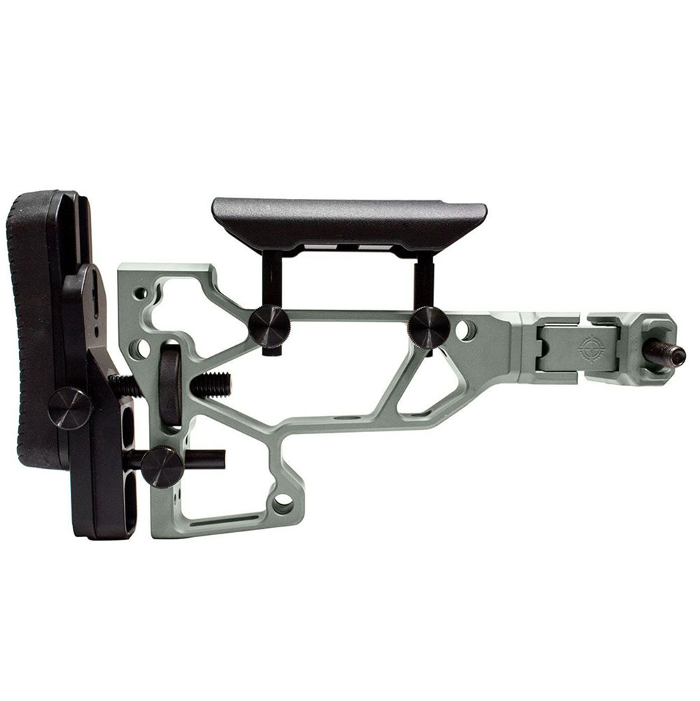 - Toolless Adjustments: Easily adjust the cheek riser and buttpad for horizontal, vertical, and cant positioning.