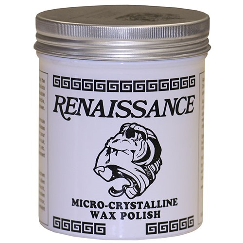 649387000014 Universally accepted as a standard conservation product by museums worldwide Renaissance™ wax polish was originally formulated in the British Museum research laboratories in the early 1950’s, in response to a discussion amongst museum technicians at an international conference on fine-art conservation. In accelerated ageing tests, the British Museum scientist found that all current commercial waxes based on the usual natural waxes (beeswax and carnauba wax) contained acids which, in time, could spoil original finishes on national historic collections of furniture. He rejected them all and investigated the new so-called ‘fossil’ or microcrystalline waxes being refined out of crude oil. With their distinct characteristics depending on their geographical origins, the new ‘man-made’ waxes could be accurately blended to meet the needs of many industries, from cosmetics and pharmaceuticals to heavy engineering. Thus, the waxes combined Nature’s best qualities with the advantages of modern technology. The blend which emerged from that research was ‘designed’ for long-term protection of all classes of museum exhibits. At last, museum technicians and others caring for important collections could use wax polish that neither caused future conservation problems nor detracted from the intrinsic values of their treasures. Commercial production and distribution of the polish was ultimately undertaken in 1968 by the London-based company Picreator Enterprises Ltd. under its trade name ‘Renaissance’. The product was quickly accepted in the international museum world and has become a universally respected standard conservation material – probably the most widely specified because of its almost unlimited uses. What makes Renaissance wax so different? It has a crystalline structure much finer than totally natural waxes, a property that confers a highly efficient moisture resistance. Countless statues and monuments in city streets are now protected by Renaissance wax from weathering corrosion. Arms and armour, steel and kitchen equipment of brass and copper in historic house museums, are kept bright and corrosion-free. When thinly applied and rubbed out to full lustre, the wax film is (and remains) glass-clear, with no discoloration either of the wax or the underlying surface. Renaissance wax is free from acids (pH neutral) and will not damage even sensitive materials. For example, photographs for exhibition or of historic value are waxed to protect the image from the natural acidity of hand or environmental pollutants. The wax does not stain or darken even white paper. On furniture or wood carvings the wax delicately enhances grain or ‘flame’ patterns. It protects existing finishes such as french polish and can also be applied directly to sanded, unfinished hardwoods without need of sealers.Waxing is the last process in hand-made furniture and in the creation of wood, stone or metal sculptures. But it is the first aspect to be appreciated by hand and eye. The clarity and lustre of Renaissance wax makes an instant visual appeal. The silk-smooth touch of the matured wax film gives added pleasure, compared to the ‘drag’ of fingers leaving trails across the softer beeswax polishes. No matter how often the wax is used there is no loss of clarity, so that fine surface detail is never obscured. Repeated use of the wax deepens the lustre, reflecting more light from surfaces and making them more ‘lively’. Picreator receives hundreds of enquiries from around the world asking if Renaissance wax is suitable for a specific surface or project. Invariably the answer is ‘yes’. Its unique qualities make it ideal for protecting all surfaces from environmental attack or handling. The wax is, for example, replacing the preservative oiling of arms and armour in museums. The wax film is hard and dry and does not, like oil, remain sticky and attract atmospheric acidity. Exhibits are more comfortable to handle. Renaissance wax is used by customers in the following ways: To protect metals such as silver, brass and copper from tarnishing, on collections of all types of metals (old coins, locks and keys, arms and armour both original and replica), on both the wood and metal surfaces of vintage cars and musical instruments, on bronze sculptures inside the home and outside exposed to the elements, on marble and granite worktops to prevent staining and on smooth leather items. These are just some of the applications the wax has been used on. Note: A test must be carried out on a small, discreet area to ensure that the wax is suitable for use on that object. Number of coats of wax needed to protect the item will vary depending on the type of surface, how frequently it is touched and location. These factors will also determine the frequency of further maintenance required.Backordered, delivery time approx. 14-30 days from UK Warehouse.
