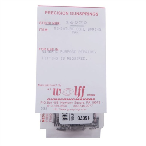 The MINIATURE COIL SPRING PAK - KIT #1607 from WOLFF is a must-have for any firearms enthusiast looking to solve their spring needs efficiently. This comprehensive kit is designed to provide high-quality replacement springs for a variety of applications.