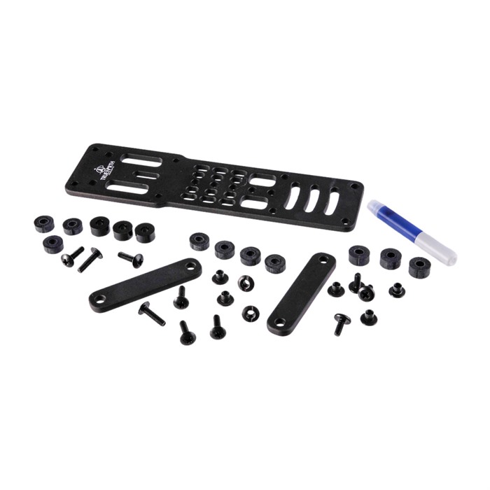 850005392941 The Modular Holster Adapter was specifically designed to eliminate the unwanted movement, flex and sliding common to factory polymer belt adapters. The Modular Holster Adapter is made from rugged, non-ferrous DFARS grade 6061-T6 aluminum and is Type 3 MIL-SPEC hard coat anodized. It supports the popular “Mid-ride” mode of carry to lower the pistol below the shooters belt line, allowing their holster system to clear body armor and pouches. This adapter fits all “three hole” pattern Safariland™ type holsters, and other brands of holster that that use this proven method of attachment. It also supports the use of many commonly used quick detach holster systems such as the QLS, MLS, ELS, and others. Holsters mounted to the Modular Holster Adapter will accommodate 10° of forward cant and 10° of negative cant for a total range of 20° degrees. The adapter holds three height mounting points, set 1/2″ apart, descending from the top mid-ride mounting point. Rigidity is key: The adapter includes belt mounting bars which are sized and spaced for use on MOLLE type battle belts, by threading each bar through the belts PALS webbing. This application works extremely well on narrow, minimalist type battle belts such as those from Ronin or Tyr Tactical. Alternatively, these mounting bars can also be directly bolted to any standard gun belt up to 2 ¼”wide. When properly installed on your gun belt, the adapter will not move. All unwanted movement, slipping and sliding has been removed from your system. The Modular Holster Adapter includes top mounting points for using a wide array of popular quick release belt mounts such as the Tek-Lok™ and polymer MOLLE type hardware. Each Modular Holster Adapter comes with a complete hardware kit of various sized screws, posts, spacers and threadlocker for mounting. The adapter is available in Black and Dark Earth anodized finishes.Delivery time approx. 2-3 days.