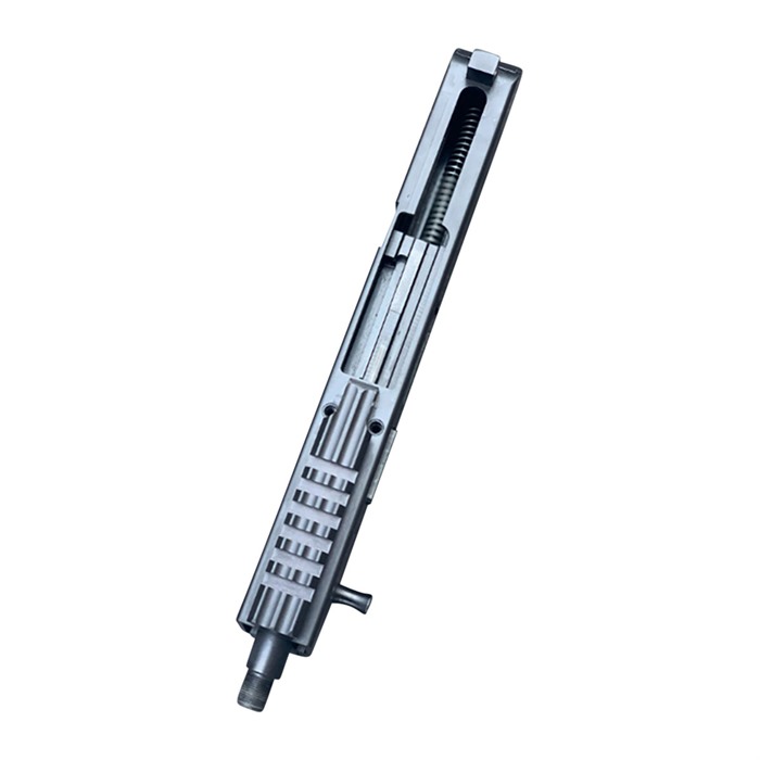 - Features include a 5.5” nitrided barrel, full-length picatinny rail, ambidextrous charging handle, and is made from hard anodized billet aluminum.
