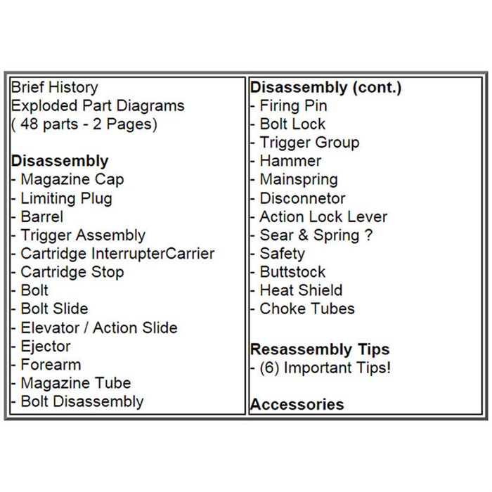 As an added bonus, each Mossberg 500, 535, 590 and 835 Assembly and Disassembly Guide also includes some development history on your particular firearm, so you know its origins as well as how it functions.
