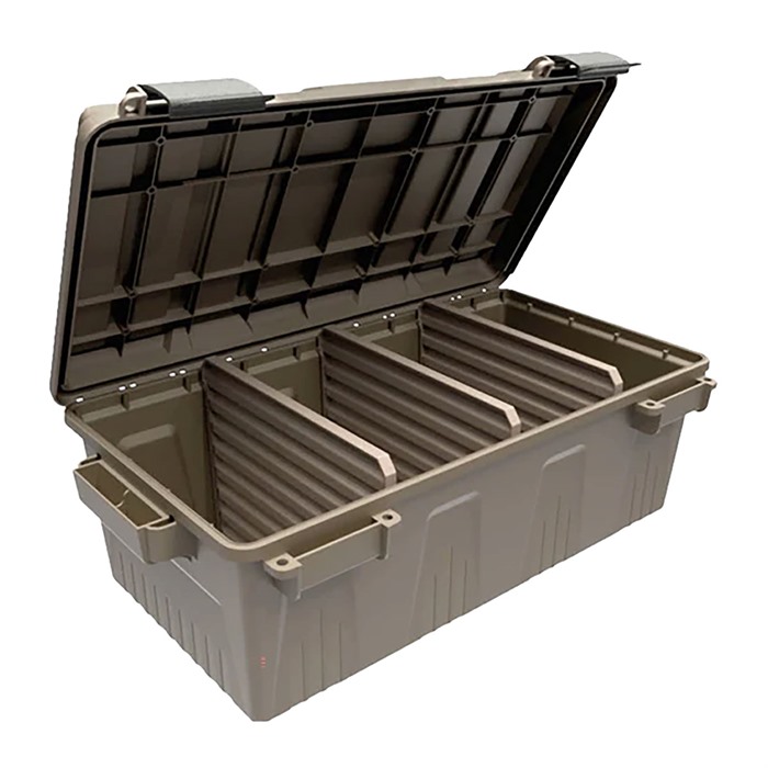 MTM’s new Divided Ammo Crate combines sturdy protection with the capacity to hold four 30 caliber cans under one lid. Features: