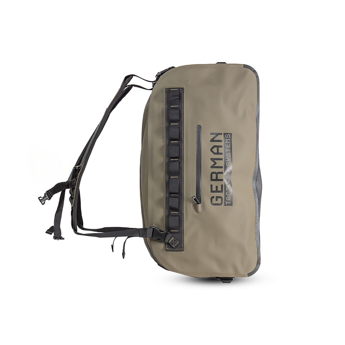 0726529840704 The Mission Carrier from German Tactical Systems is built for those who carry more and demand the same rugged reliability found across our waterproof gear line. Designed for field operators, outdoor professionals, and anyone on the move, this Hybrid Duffle Bag offers maximum versatility, comfort, and protection from the elements. Hybrid Carry System: The Mission Carrier can be carried as a traditional duffle or worn like a backpack. The detachable straps can be crossed over or secured together with integrated Velcro loops, allowing you to customize your carry setup based on the mission. Waterproof Protection: Built from heavy-duty, waterproof materials that shield your gear from rain, mud, and harsh environments. Perfect for field use, travel, or everyday tactical applications. Spacious Main Compartment: A large waterproof main compartment with internal securing straps keeps your gear organized and stable, even in motion. Internal Storage: Includes two large inner side pouches for structured organization of smaller equipment, tools, or clothing. External Side Pouches: Additional outer compartments provide quick access to frequently used items without opening the main storage area. Full-Length Utility Loops: Both sides feature continuous loops designed for attaching carabiners, accessories, or securing the Mission Carrier to vehicles, boats, or racks during transport. Adaptable and Rugged: Whether you’re on deployment, at the range, or heading out for a weekend operation, the Mission Carrier stands up to heavy use while keeping your gear dry, accessible, and secure. Volumen = 51 L Length = 59cm Width = 27cm Height = 32cmDelivery time approx. 6-10 days.