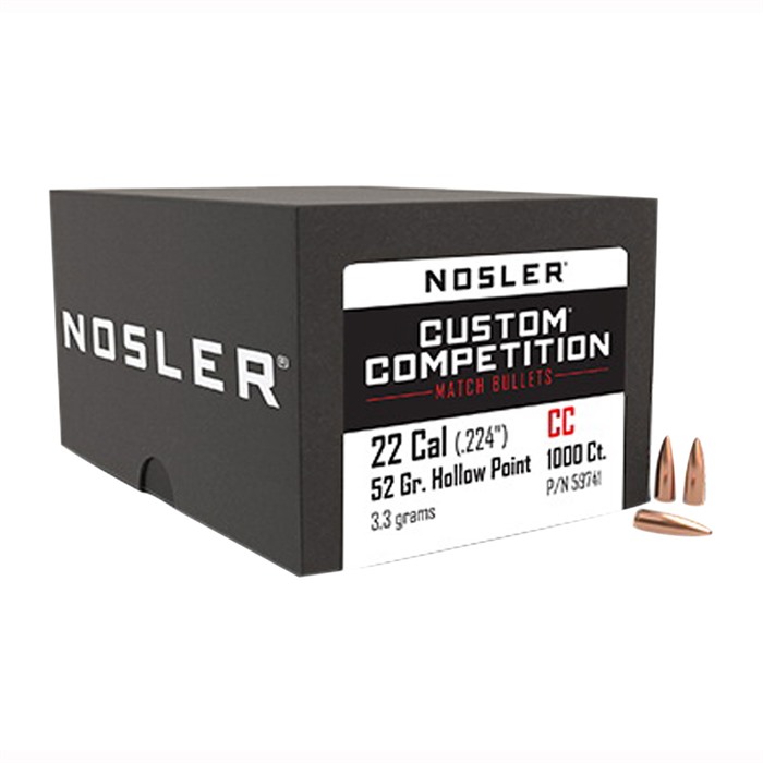 - Nosler's Custom Competition 22 Caliber bullets feature precision-made bullet jackets and ultra-precise lead alloy cores for high performance in match shooting.