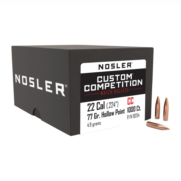 - Nosler's Custom Competition 22 caliber bullets feature precision-made bullet jackets and ultra-precise lead alloy cores for high performance in match shooting.