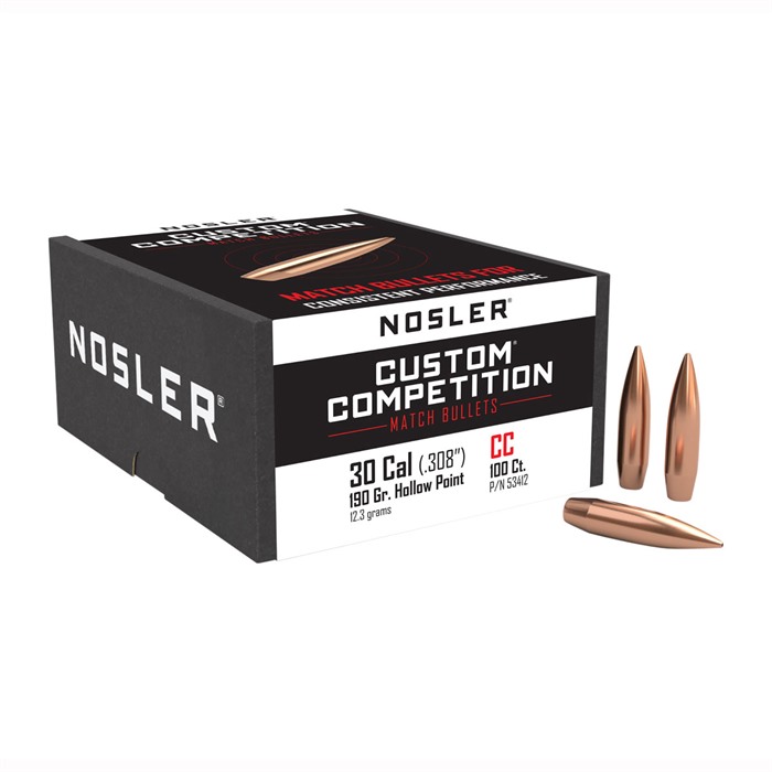 - Nosler's 30 caliber Custom Competition bullets feature precision-made bullet jackets and lead alloy cores for high performance in match shooting.