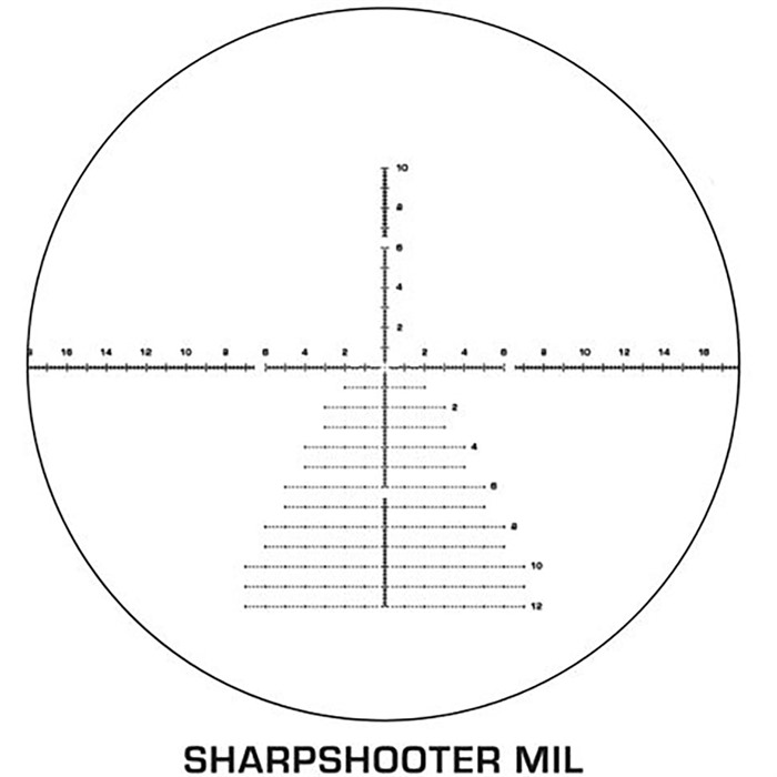 - The Patriot rifle scope features first focal plane Sharpshooter Grid MIL reticles for precise aiming and includes zero-resettable tactical turrets for accurate adjustments.