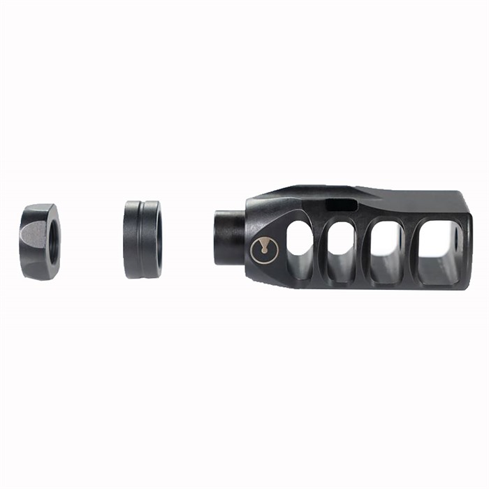 - Expanding Ports: Vents gas at a 90-degree angle to the sides of the brake, minimizing felt recoil.