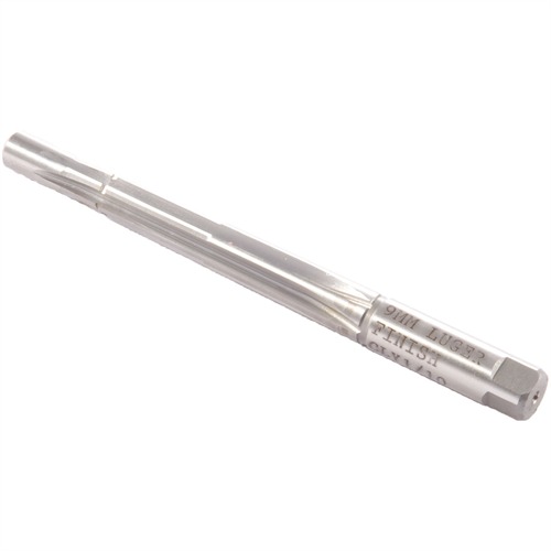 The CLYMER Rimless Finisher Style Reamer is specifically designed to fit 9mm Luger barrels, ensuring accurate chambers for a variety of handgun cartridges.