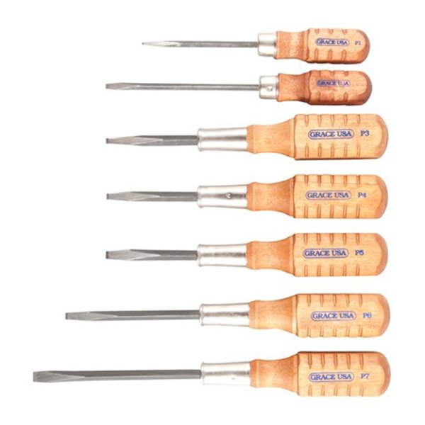 731940777775 Pre-ground, parallel tipped screwdrivers to fit specific gun screw applications. Features square shank, hardened tips, square hardwood handle, and nickel-plated ferrule. Made in the USA; limited warranty. Pistolsmith Set has seven screwdrivers that fit many Colt, S&W and Ruger® handgun screws, and many others.Backorderable, delivery time approx. 4-12 weeks from the USA warehouse.