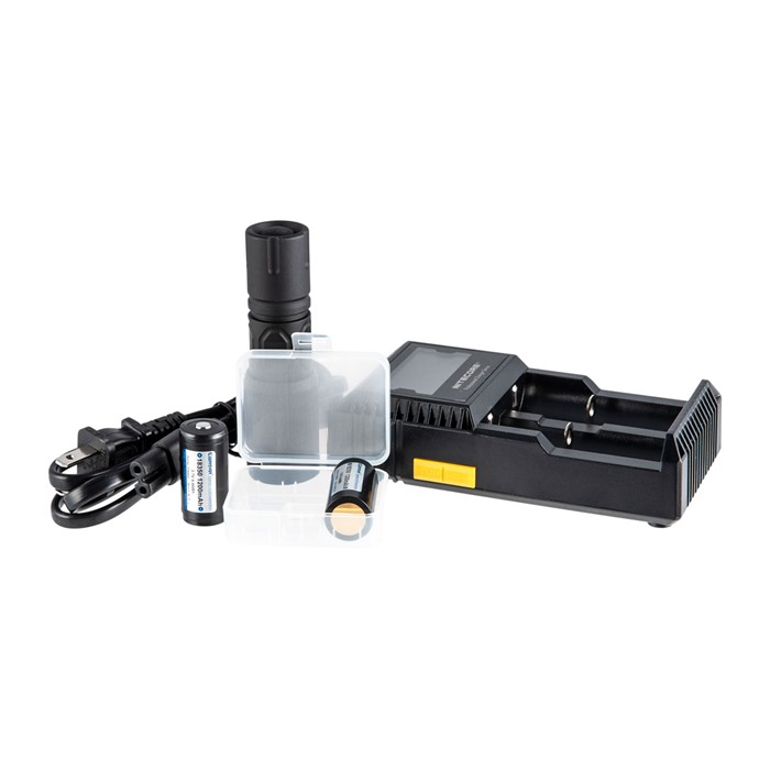 - It comes with a KeepPower 1200mAh 18350 battery, XTAR MC2 charger, and has a runtime of approximately 35 minutes on these cells.
