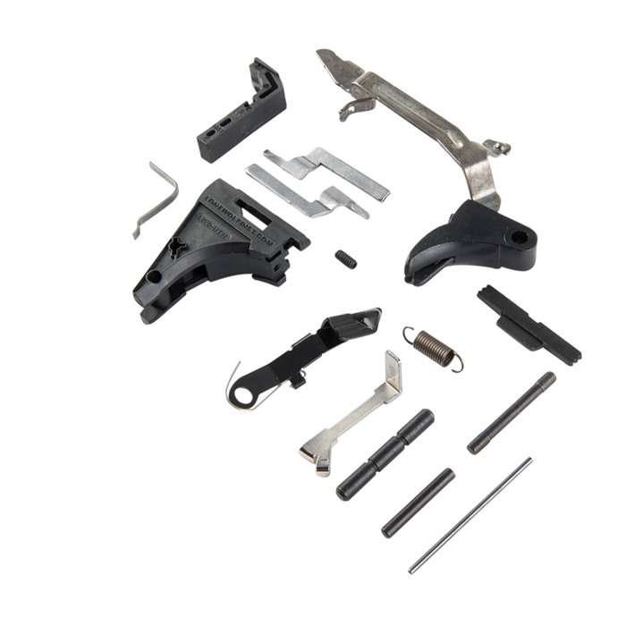 - Kit includes various components such as the Universal Trigger Housing, Trigger with Trigger Bar, and Extended Slide Stop among others.