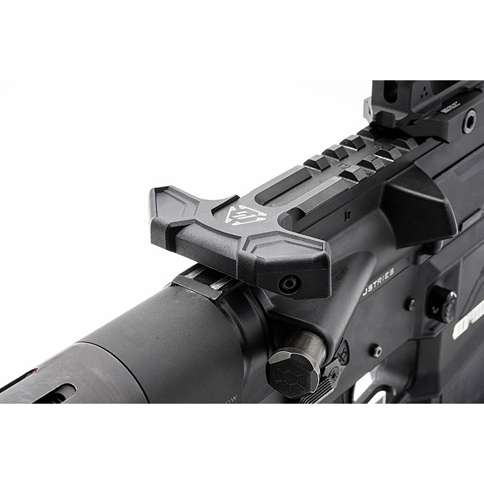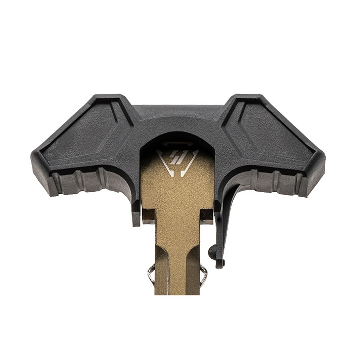 Previous latch handle systems were made from hard anodized aluminum, which, while secure, could cause damage to the upper receiver charging port over time. The Ambidextrous ISO Latch is created from high-density polymer with nylon infill, ensuring it withstands high temperatures and lasts for more than enough charges without burning a hole in your pocket.