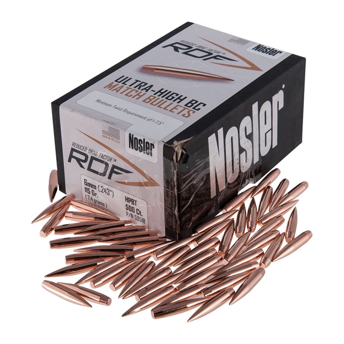- Nosler's RDF 6mm bullets are designed for maximum performance with high ballistic coefficients for flat trajectories and minimal wind drift.