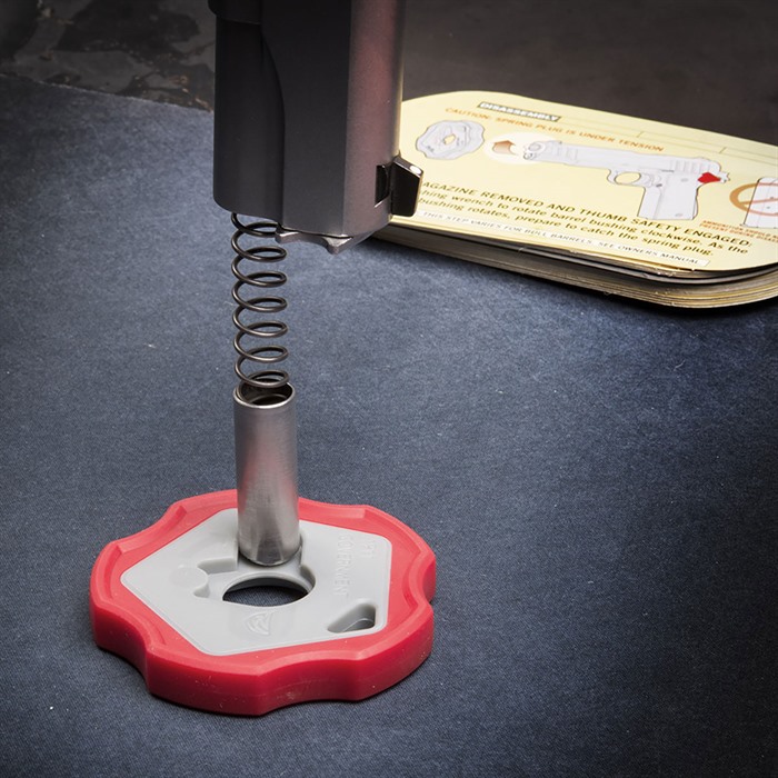 Finally, a solution to the problem you’ve been dealing with for years. Removing the barrel bushing on your 1911 has never been easier. Press and turn. The ingenious design keeps the spring and plug corralled—and you out of the dentist’s chair.