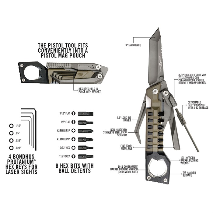 With hex wrenches stored magnetically on the tool and gunsmith-grade bits for 1911 bushing removal, this tool is a must-have for both novice and experienced shooters alike. Whether you’re at the bench, on the range, or in the field, the Pistol Tool ensures your trigger finger stays happy.