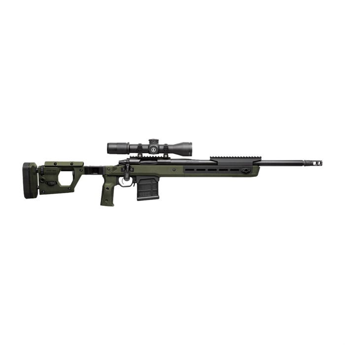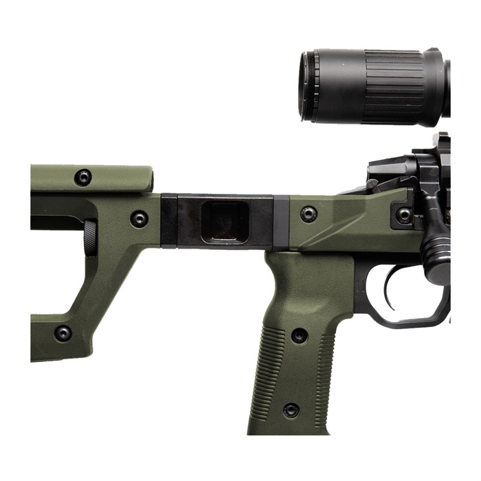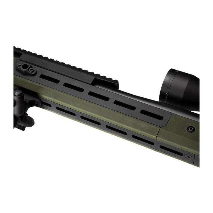 - The chassis integrates an AICS pattern magazine well and M-LOK slots for accessories, and is constructed with durable 6061-T6 billet aluminum with a hard-anodized finish.
