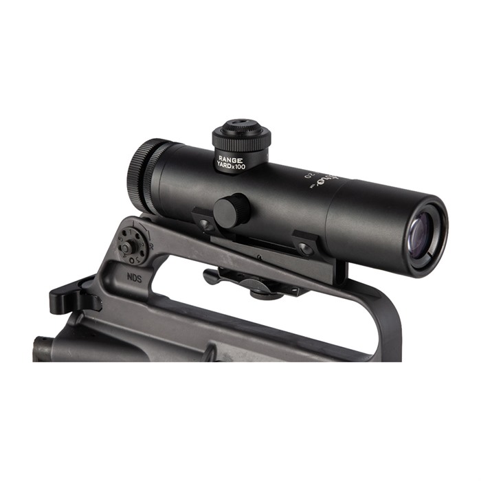 - The Brownells Retro 4x Carry Handle Scope is designed to resemble 1970s Colt® AR-15 optics with modern improvements in optical clarity and performance.