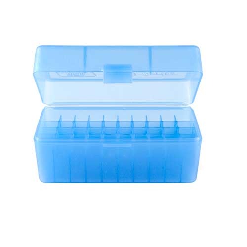 026057218243 MTM 50 Rd Ammo Box for PPC/BR Cases, Clear Blue Notes: Flip-Top Lid with Snap-Loc Latch Fits the following calibers in the bullet up or down position: 22 Bench Rest 22 Cheetah 22 PPC 22 Remington Jet 22 Savage High Power 22-250 Remington 224 Weatherby Mag 224 Valkyrie 6mm Bench Rest 6mm Norma Bench Rest 6mm PPC 250 Savage 6.5 Grendel 6.8 Remington SPC 7mm Bench Rest 7.62x39mm Russian 30 Remington 32-40 Winchester 35 Remington 350 Remington Mag 350 Legend 351 Winchester Self-loading Fits the following calibers in the bullet down position: 219 Donaldson Wasp 219 Zipper 25-35 WCF 445 Super Mag 460 S&W Mag