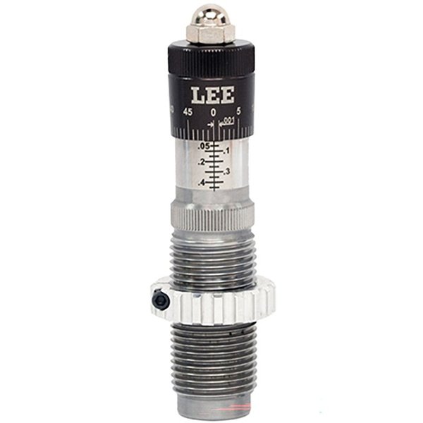 734307922344 LEE PRECISION RIFLE PRECISION MICROMETER BULLET SEATING DIES Introducing the new Precision Micrometer bullet seating die. Features dead length bullet seating with smooth, accurate adjustment. Tests prove sliding bullet guide provides cartridges with the least bullet runout. When used as a dead length bullet seating die, the body contacts the shell holder assuring precise uniform seating depth. FEATURES Laser engraved micrometer thimble and body is easy to read with divisions representing one thousandth of an inch, reads just like a precision depth micrometer. Infinitely adjustable, providing precision bullet seating depth. Bullet seating stem is machined and burnished to seat nearly any point style bullet without damage or marking. The case mouth and bullet are held in perfect alignment by a floating bullet guide. The bullet guide is provided with radial clearance to allow the case and bullet guide to align perfectly with the bullet seater screw. The floating bullet guide is reversible, simply unthread guide and re-install to allow seating and crimping simultaneously, an exclusive feature to Lee. This bullet seating die proves accuracy doesn't have to cost a lot.Delivery time approx. 7-14 days.