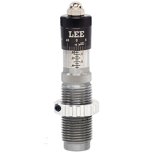 734307922412 LEE PRECISION RIFLE PRECISION MICROMETER BULLET SEATING DIES Introducing the new Precision Micrometer bullet seating die. Features dead length bullet seating with smooth, accurate adjustment. Tests prove sliding bullet guide provides cartridges with the least bullet runout. When used as a dead length bullet seating die, the body contacts the shell holder assuring precise uniform seating depth. FEATURES Laser engraved micrometer thimble and body is easy to read with divisions representing one thousandth of an inch, reads just like a precision depth micrometer. Infinitely adjustable, providing precision bullet seating depth. Bullet seating stem is machined and burnished to seat nearly any point style bullet without damage or marking. The case mouth and bullet are held in perfect alignment by a floating bullet guide. The bullet guide is provided with radial clearance to allow the case and bullet guide to align perfectly with the bullet seater screw. The floating bullet guide is reversible, simply unthread guide and re-install to allow seating and crimping simultaneously, an exclusive feature to Lee. This bullet seating die proves accuracy doesn't have to cost a lot.Delivery time approx. 7-14 days.