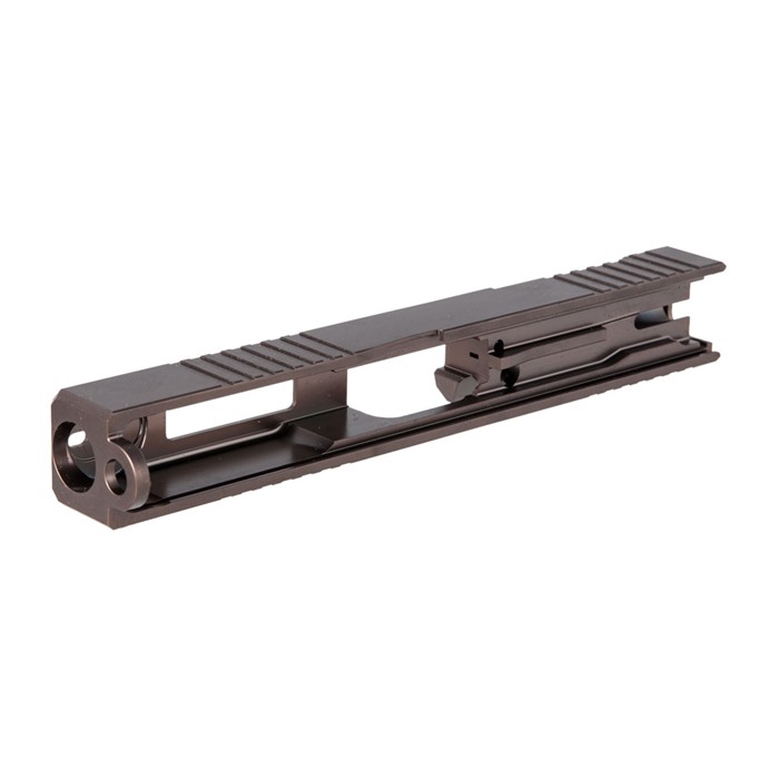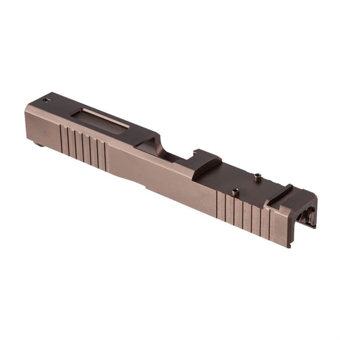 - Available in three finishes—Black Nitride, Bronze PVD, and Flat Dark Earth (FDE)—the slide fits Gen3 Glock® 17 pistols and can be used for custom builds on Polymer80 80% frames.
