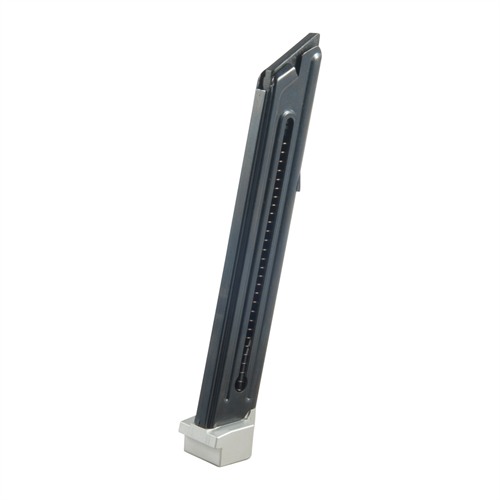 - The magazine features an extended aluminum base pad for proper orientation and seating.