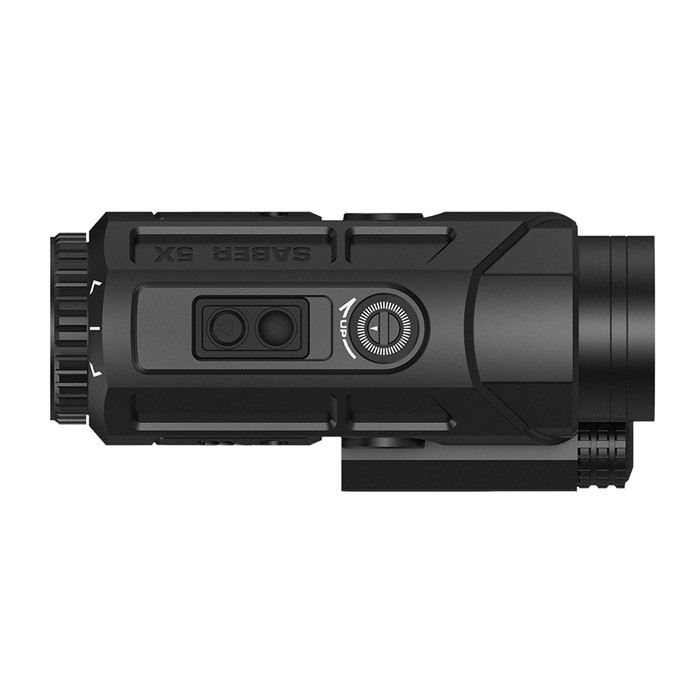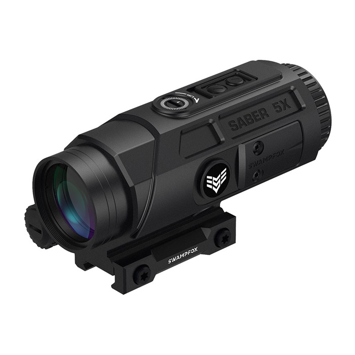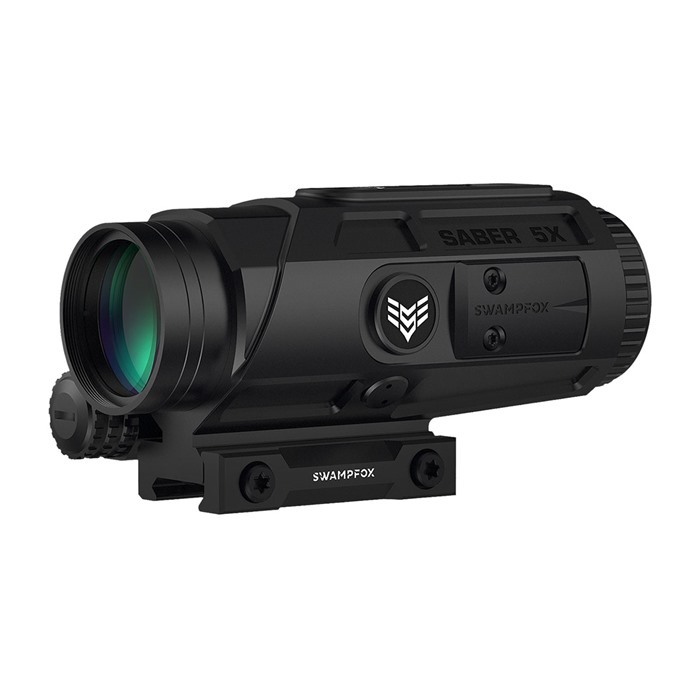 - The Saber 5x prism scope offers a wide 10-degree field of view with a fast and forgiving eye box, and the ability to switch from 1x to 5x quickly using sidecar mounts.