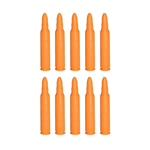 Brightly colored plastic and a different “feel” makes sure you won’t confuse these for live rounds. Popular with many departments and agencies for use in Immediate Action training for just that reason. These do not duplicate weight and balance of loaded rounds or function-testing dummies.Delivery time approx. 7-14 days.