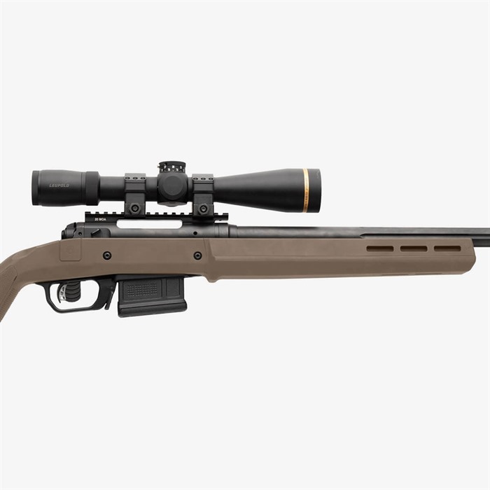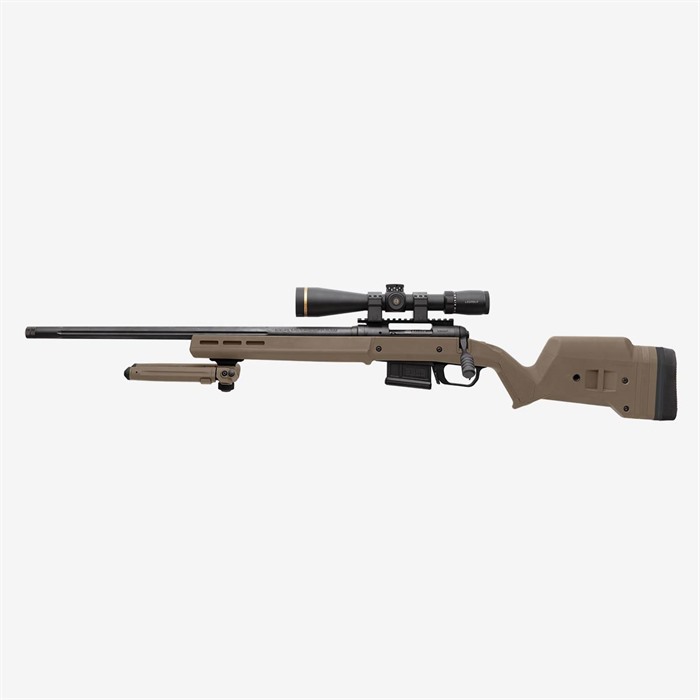The Hunter 110 Stock – Savage 110 Short Action is the latest addition to the Magpul Hunter stock product line. It features enhanced ergonomics, versions for both right and left-hand actions, eight M-LOK® slots for mounting options, and a fully adjustable length of pull and comb height. These features have been optimally designed to provide a more stable shooting platform, improved user comfort, and individual accessory customization.
