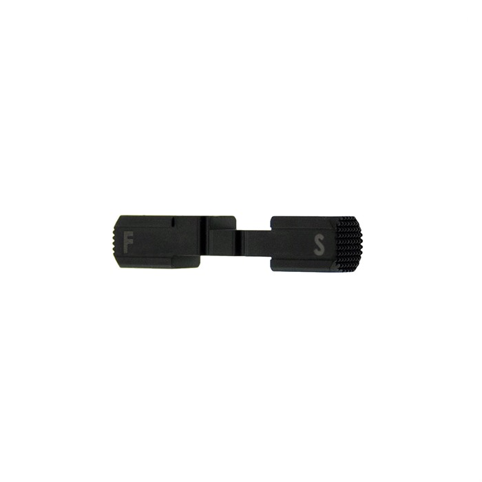 Should've Been Factory! This is an easy to install upgrade for any AUG® owner Keeping the same dimensions as the original safety selector, but adding smooth, tapered edges, this product allows for easy manipulation of the safety selector without the sharp edges known to catch, cut, and scratch. FEATURES Tapered edges for better ergonomics Compatible with Steyr AUG® Standard and NATO stocks Clearly marked Fire and Safe indicators Aluminum material for Increased Durability Textured ends for ease of engagement Limited Lifetime Warranty