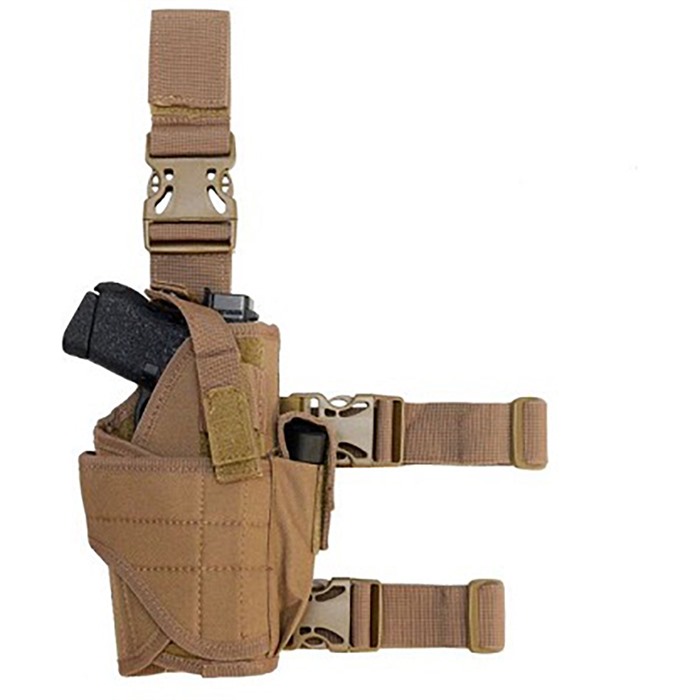 885344482565 CACTUS JACK TACTICAL DROP LEG HOLSTER The Drop Leg Holster is an adjustable hip rig to secure most handguns. Compatible with these popular firearms: Glock 17, Beretta 92, 1911 models, and more. A hook and loop side pouch will hold a 7-15 round pistol mag. 600 Denier polyester construction gives the holster a sturdy body that adjusts to fit your pistol. Hook and loop flaps teamed with an adjustable webbing strap secure the pistol. Reinforced webbing adjusts to fit a riggers, pistol, or duty belt with a quick-release buckle for rapid removal. The leg harnesses are elastic and webbing, and the straps are also coupled with quick-release buckles. Mount this holster to your hip for quick access to your pistol. Trust that your defense is just inches away. FEATURES: Fully adjustable pistol holster Velcro + elastic adjustable thigh straps Quick-release belt attachment For right hand use only Durable 600 Denier construction Weight: 15.0 oz.Delivery time approx. 7-14 days.