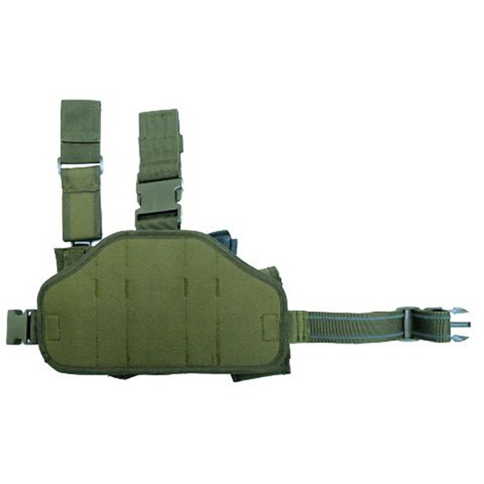 196640089793 CACTUS JACK TACTICAL DROP LEG HOLSTER W/MAG POUCH This heavy-duty tactical nylon Drop Leg holster will keep your weapon right where you need it most, close to you! The adjustable thigh strap will fit most legs, while the quick release belt attachment allows quick removal. Each rig includes a MOLLE attached mag pouch to keep an extra magazine close by. SPECIFICATIONS: Right Hand Draw Color: Black/O.D Green Condition: NewDelivery time approx. 7-14 days.