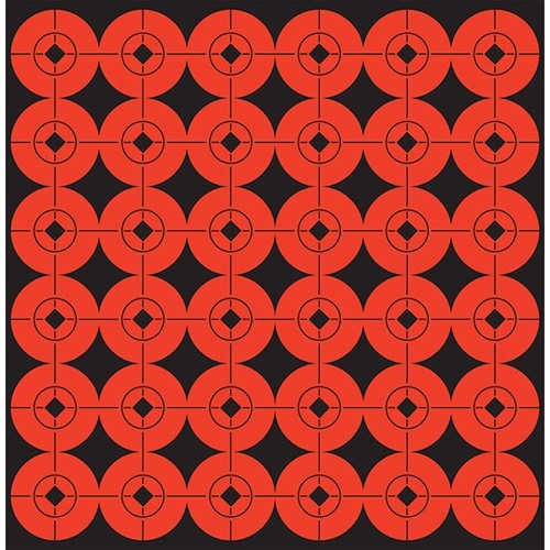 Bright stick-on target spots are easy to use and convenient for creating instant bullseyes for target practice, sighting in, and other shooting activities that require a target that’s easy to see, even at long range. The high-contrast, radiant orange-red or fluorescent green color ensures a sharp sight picture for smaller groups.