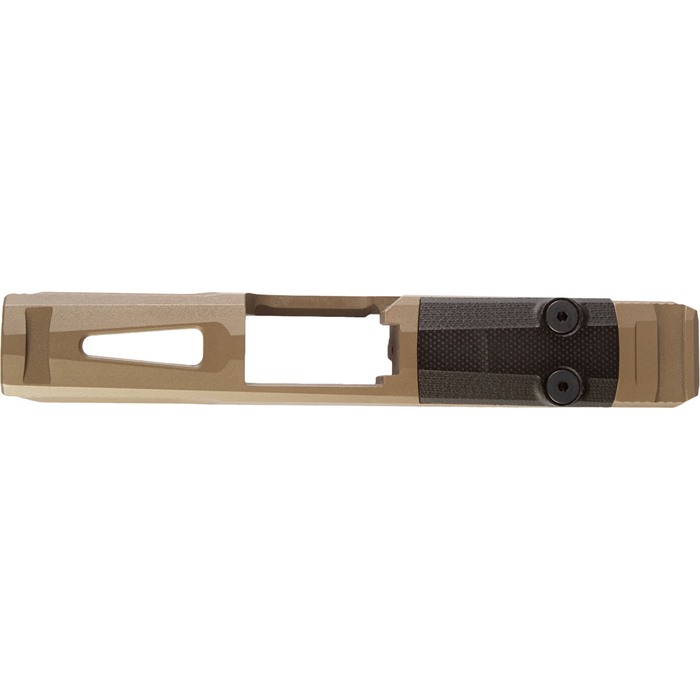 - The slide is compatible with optics such as SHIELD RMS-C and SIG ROMEOZERO and includes a G10 cover plate when not using an optic.